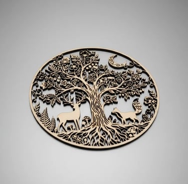 Custom-designed décor pieces crafted with CNC and laser technology.